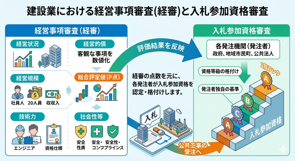 あなたの会社の「経営力」と「技術力」を点数化します。 ここでの点数アップ対策が、より大きな工事を受注するための鍵となります。